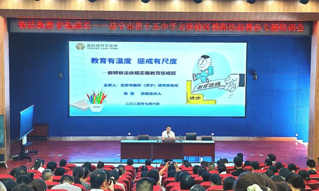 为全面贯彻党的教育方针,落实立德树人的根本任务,进一步加强新时代师德师风建设,明确教育惩戒边界,保护师生合法权益,近日,北京市盈科(济宁)律师事务所受济宁市十五中学邀请开展以“教育有温度 惩戒有尺度”为主题的法治讲座。
